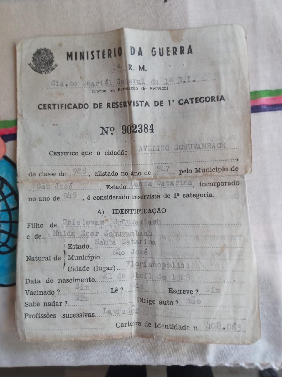 CERTIFICACADO DE RESERVISA DE 1A CATEGORIA —AVELINO SCHWAMBACH