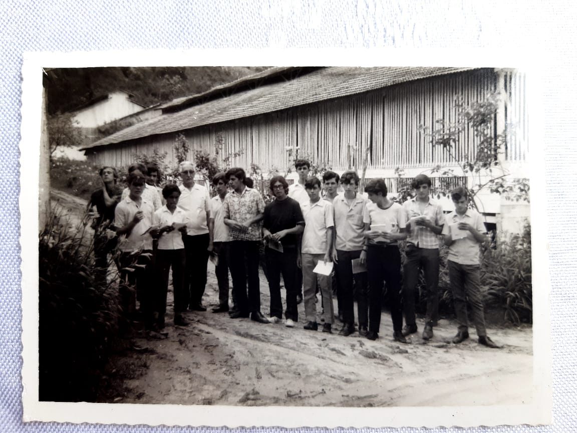 10- O EXEMPLAR TRABALHO DESONVOLVIDO POR THEODORO SCHWAMBACH ERA SEMPRE USADO COM FINALIDADES EDUCACIONAIS. A FOTO DEMONSTRA O EMPREENDEDOR E ALUNOS DA ESCOLA RURAL DE OLIVÂNIA/ES.