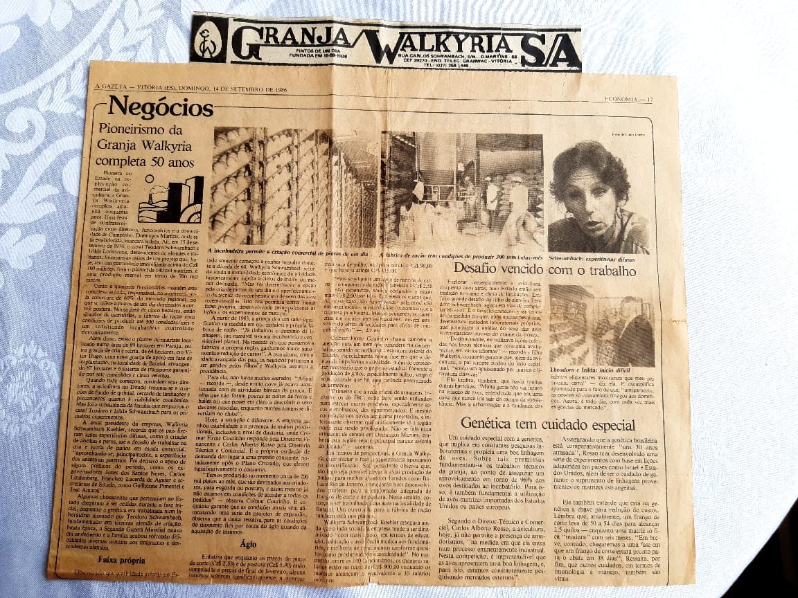 - PUBLICAÇÃO NO “A GAZETA” PRESTIGIADO JORNAL CAPIXABA, EM 14/09/1986, POR OCASIÃO DO CINQUENTENÁRIO DA FUNDAÇÃO DA GRANJA WALKÍRIA.