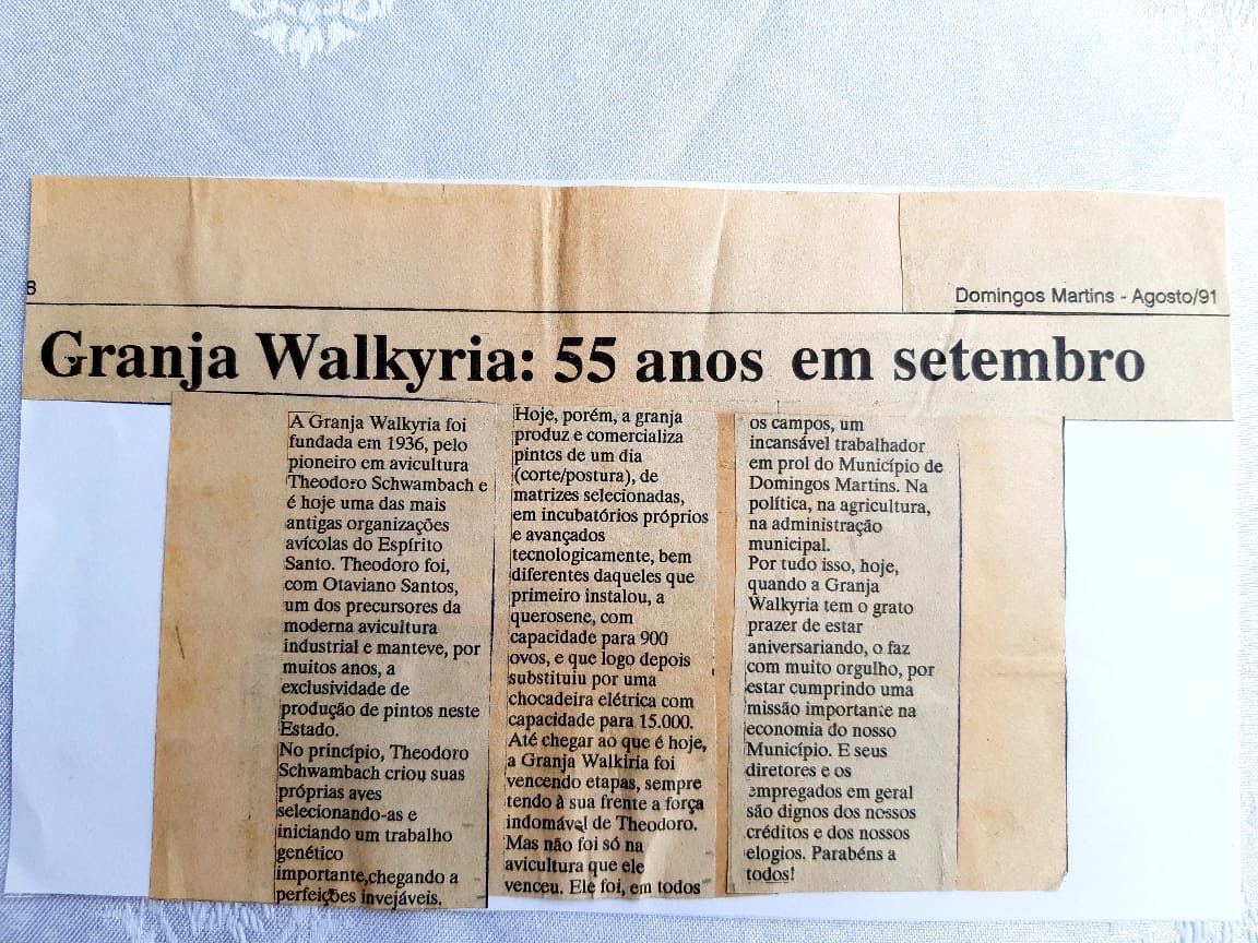 2- O MESMO “A GAZETA” REGISTRA EM AGOSTO DE 1991 OS 55 ANOS DE SUCESSO DA GRANJA WALKYRIA.