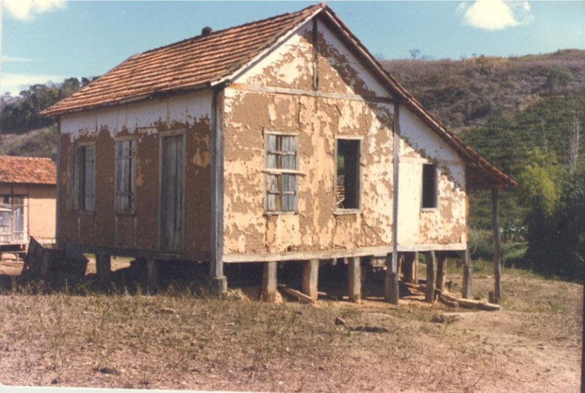Casa, às margens do Rio Guandú, em Afonso Penna / Ibituba / ES, onde o casal PEDRO e MARIA AMÉLIA viveu por muitos anos. Aí nasceu a maioria dos filhos e até alguns netos. Após a morte do esposo, MARIA AMÉLIA e filhos continuaram a morar nessa casa até 1958 e a explorar as atividades agropastoris na fazenda. Quando as fotos foram tiradas a casa não estava habitada.