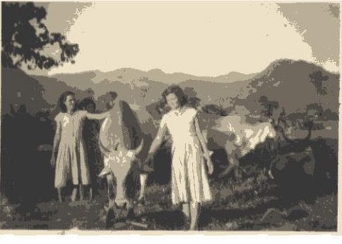 Duas das filhas de PEDRO e MARIA AMÉLIA e de alguns animais cuidados basicamente por elas e pela mãe.