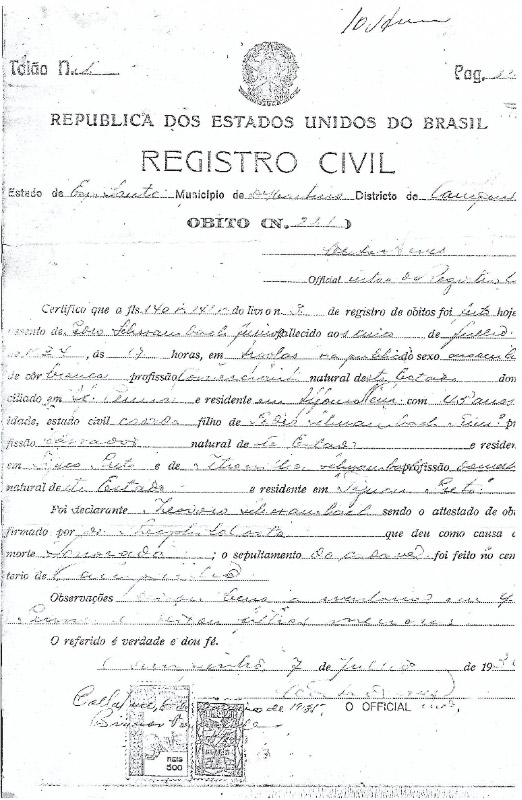 1.4 Corina Schwambach,nasceu em 1919, em Ibituba-ES, casou com Sebastião Tápias. Corina eSebastião tiveram quatro filhos, todos em Ibituba- ES: