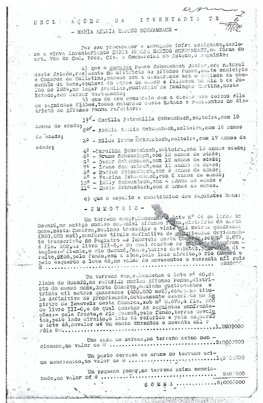 INVENTÁRIO DOS BENS PEDRO SCHWAMBACH JÚNIOR—INVENTARIANTE MARIA AMELIA HERZOG SCHWAMBACH