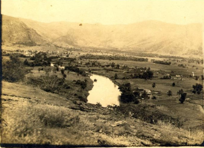 Margem esquerda do Rio Guandú. Vê-se na margem direita a fazenda e a casa de PEDRO / MARIA AMÉLIA. Ao longe detalhes da vila de Afonso Penna / Ibituba